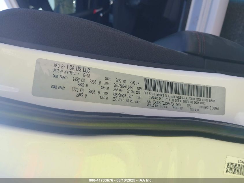 Color WhiteCylinders 8Drive UnknownVIN 1C4SDHCT6JC******State Run & Drive VerifiedDamage Back AutoRIA