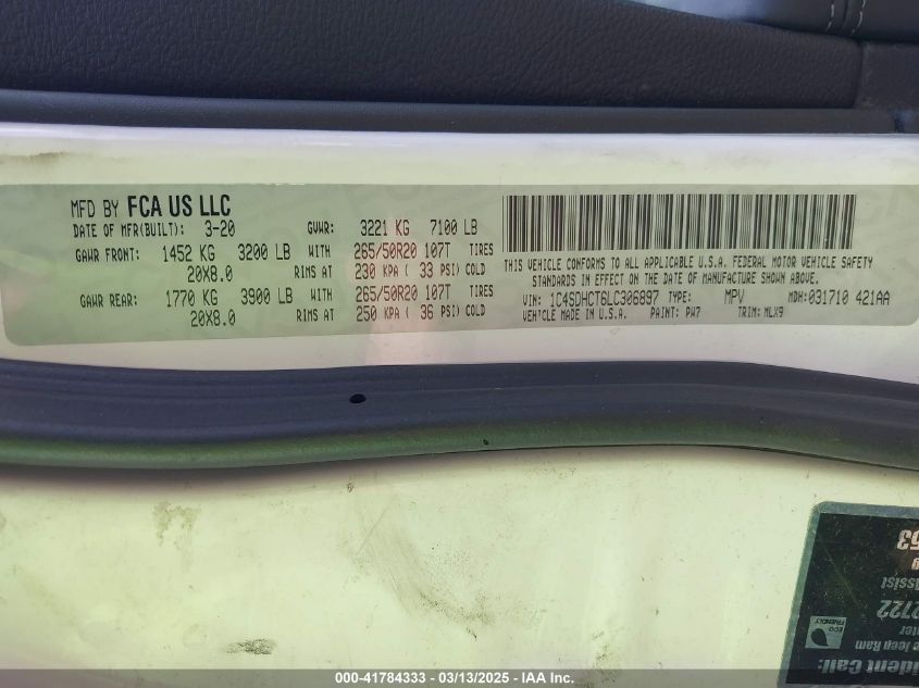 Color WhiteCylinders 8Drive UnknownVIN 1C4SDHCT6LC******State Run & Drive VerifiedDamage Front or back AutoRIA