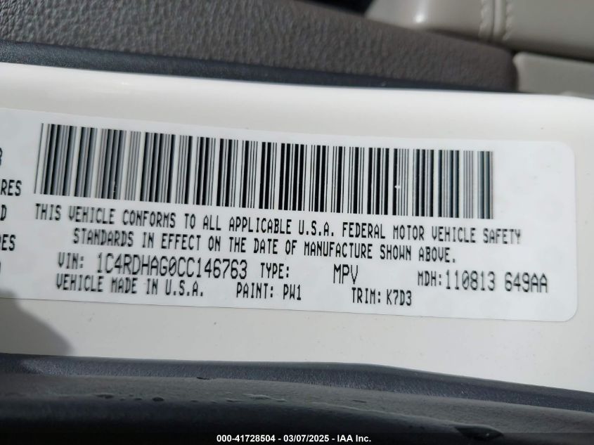 Color WhiteCylinders 6Drive UnknownVIN 1C4RDHAG0CC******State Run & Drive VerifiedDamage Front or back AutoRIA