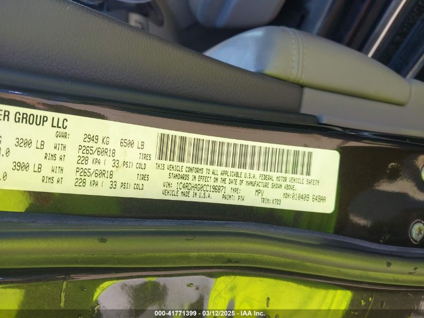 Color BrownCylinders 6Drive UnknownVIN 1C4RDHAG0CC******State Run & Drive VerifiedDamage Front or back AutoRIA