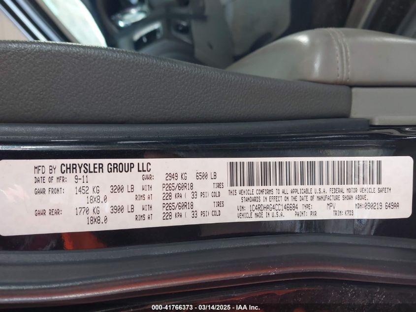 Color BlackCylinders 6Drive UnknownVIN 1C4RDHAG4CC******State Run & Drive VerifiedDamage Left side AutoRIA