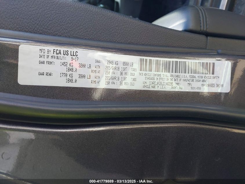 Color GrayCylinders 6Drive Full driveVIN 1C4RDJAG9JC******State Run & Drive VerifiedDamage Front right AutoRIA