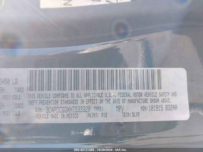 2017 DODGE JOURNEY 2017 Gasoline, 3.6, Front wheel drive, VIN - 3C4PDCGGXHT****** from the USA