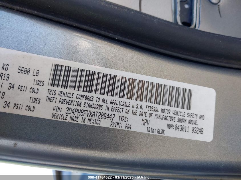Color GrayCylinders 6Drive Full driveVIN 3D4PH9FVXAT******State Run & Drive VerifiedDamage Front or backAuction date 2025-03-20 AutoRIA