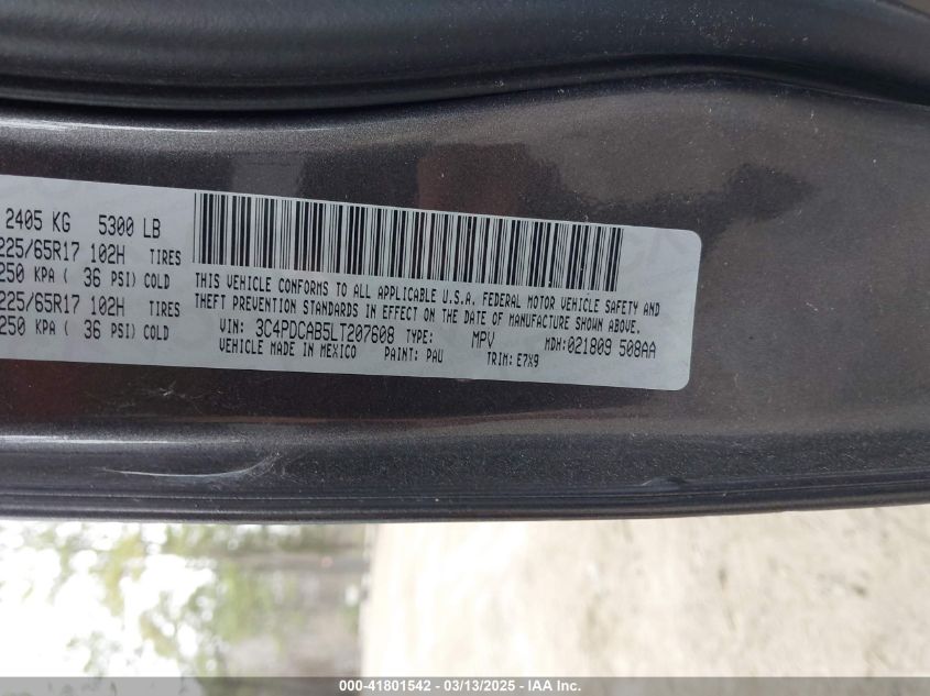 2020 DODGE JOURNEY 2020 Gasoline, 2.4, Front wheel drive, VIN - 3C4PDCAB5LT****** from the USA
