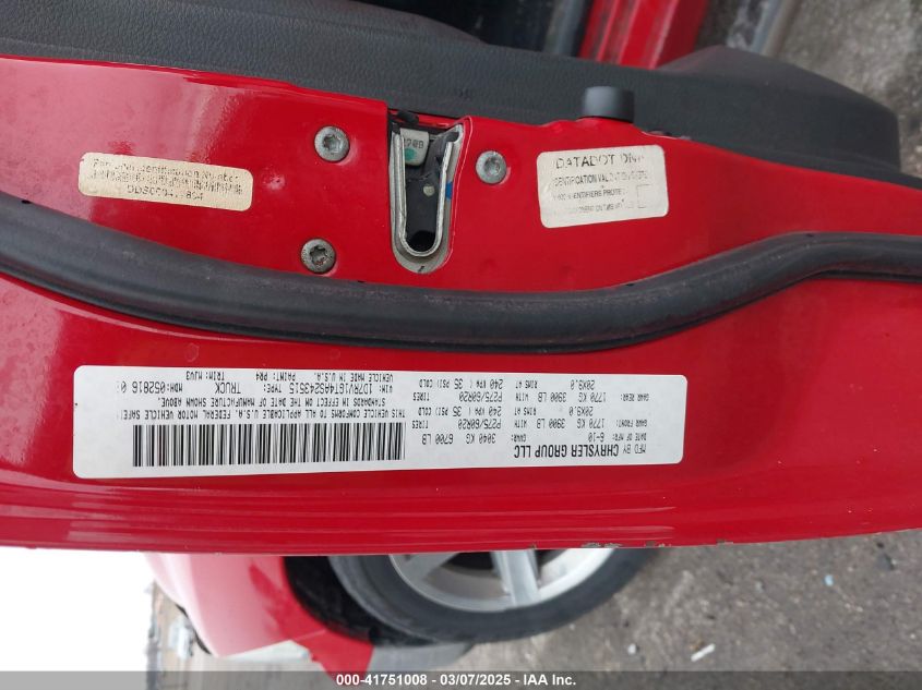 Color RedCylinders 8Drive Full driveVIN 1D7RV1GT4AS******State Run & Drive VerifiedDamage Front right