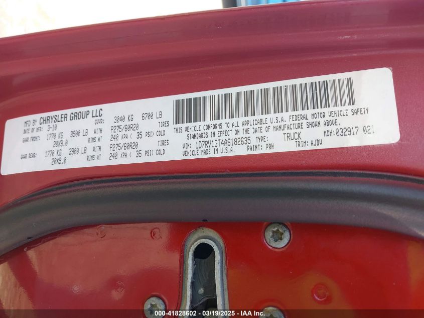 2010 DODGE RAM 1500 2010 Gasoline, 5.7, Full drive, VIN - 1D7RV1GT4AS****** from the USA