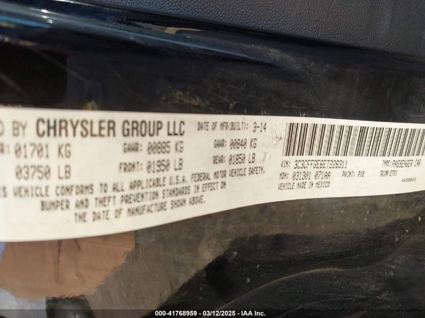 Color BlackDrive Front wheel driveVIN 3C3CFFGE6ET******State Run & Drive VerifiedDamage Front left AutoRIA
