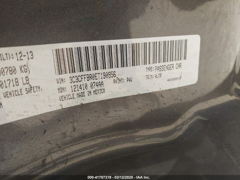 Color GrayCylinders 4Drive Front wheel driveVIN 3C3CFFBR0ET******State Run & Drive VerifiedDamage It is unknown AutoRIA