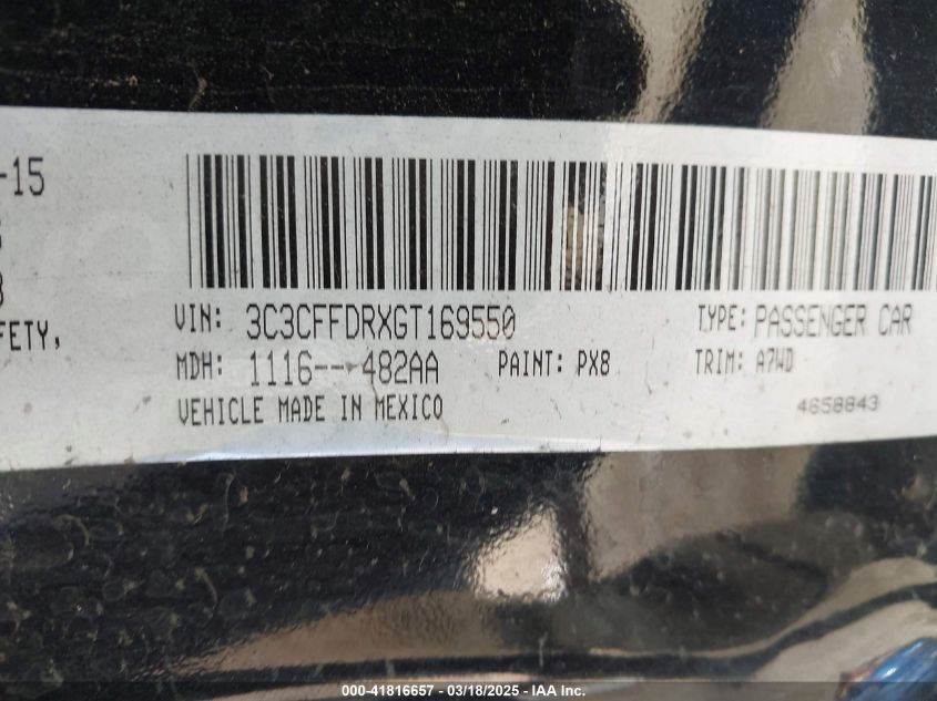 Color BlackCylinders 4Drive Front wheel driveVIN 3C3CFFDRXGT******State Run & Drive VerifiedDamage It is unknown