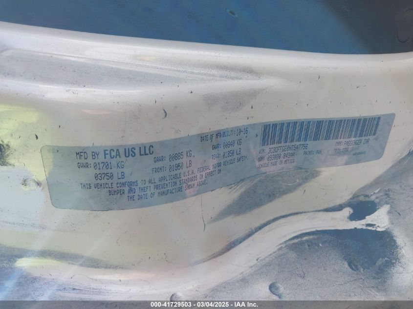 Color WhiteDrive Front wheel driveVIN 3C3CFFGE0HT******State Run & Drive VerifiedDamage FireAuction date 2025-03-26 AutoRIA