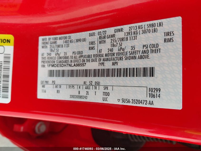 Color RedCylinders 4Drive Full driveVIN 1FMDE5DH7NL******State Run & Drive VerifiedDamage Front left AutoRIA