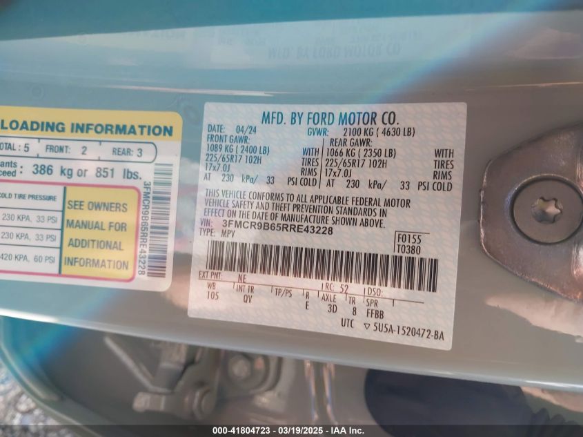 2024 FORD BRONCO SPORT 2024 Gasoline, 1.5, Full drive, VIN - 3FMCR9B65RR****** from the USA