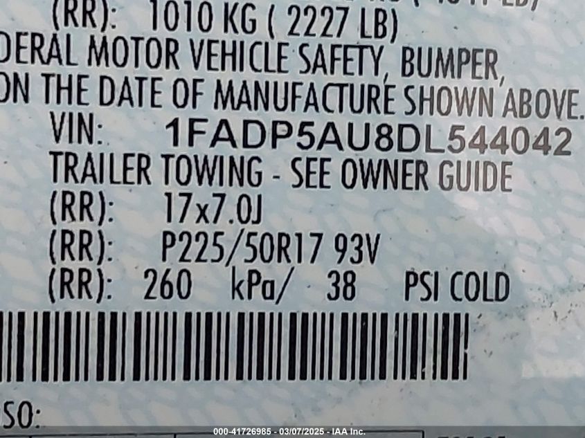 Color GrayCylinders 4Drive Front wheel driveVIN 1FADP5AU8DL******State Run & Drive VerifiedDamage Front or backAuction date 2025-03-21 AutoRIA