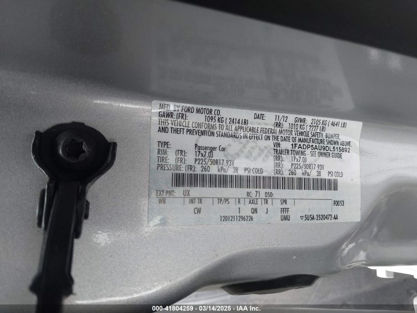 Color SilverCylinders 4Drive Front wheel driveVIN 1FADP5AU9DL******State Run & Drive VerifiedDamage Front or back AutoRIA
