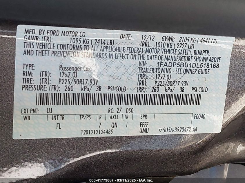 Color GrayCylinders 4Drive Front wheel driveVIN 1FADP5BU1DL******State Run & Drive VerifiedDamage Front leftAuction date 2025-03-20 AutoRIA