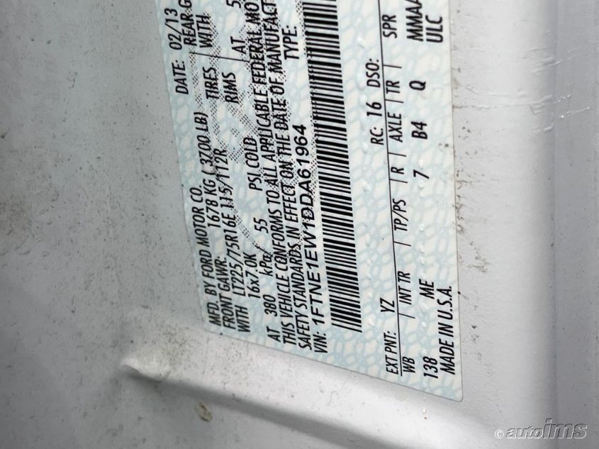 Color Cylinders 8Drive Rear wheel driveVIN 1FTNE1EW1DD******State Run & Drive VerifiedDamage InsignificantAuction date 2025-06-01 AutoRIA