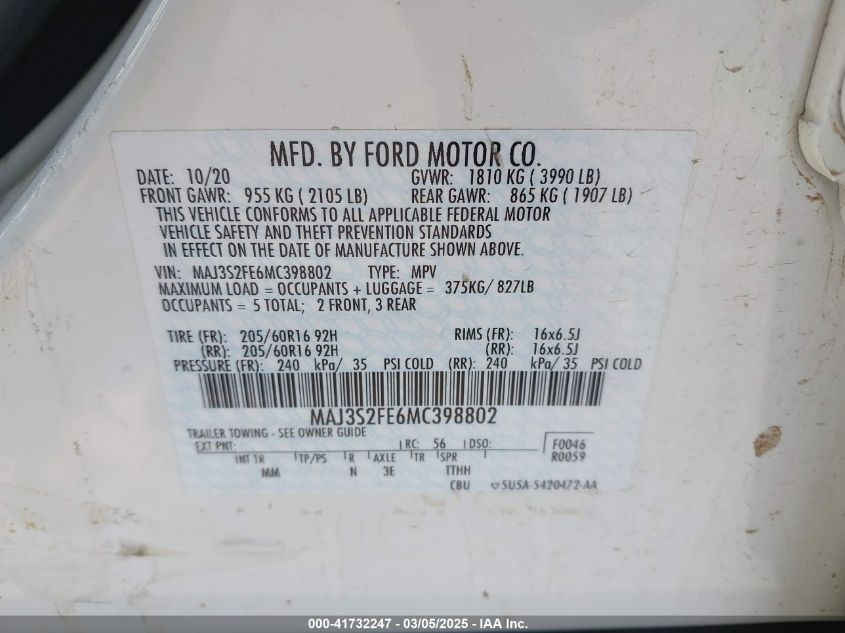 2021 FORD ECOSPORT 2021 Gasoline, 1.0, Front wheel drive, VIN - MAJ3S2FE6MC****** from the USA