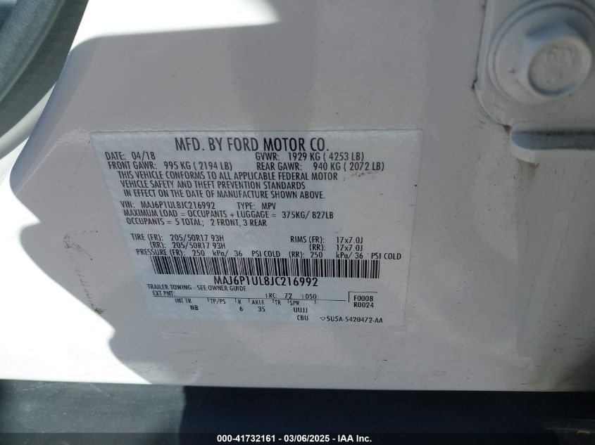 2018 FORD ECOSPORT 2018 Gasoline, 2.0, Full drive, VIN - MAJ6P1UL8JC****** from the USA