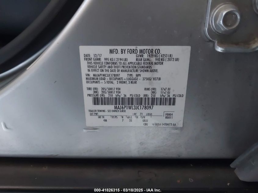 2018 FORD ECOSPORT 2018 Gasoline, 2.0, Full drive, VIN - MAJ6P1WL3JC****** from the USA