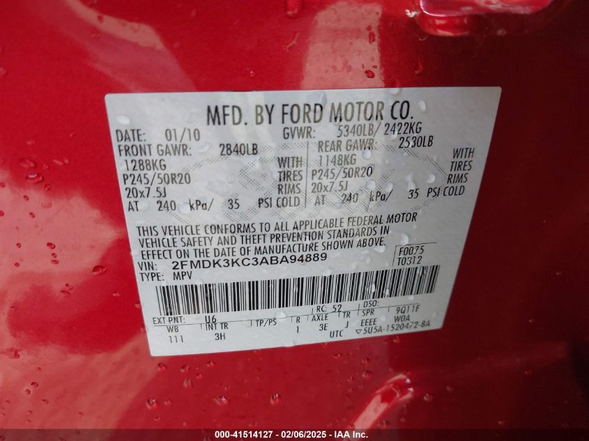 Color RedCylinders 6Drive Front wheel driveVIN 2FMDK3KC3AB******State Run & Drive VerifiedDamage Front or back