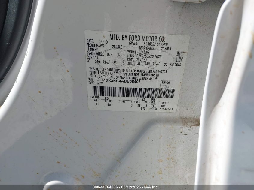 2010 FORD EDGE 2010 Gasoline, 3.5, Front wheel drive, VIN - 2FMDK3KC4AB****** from the USA