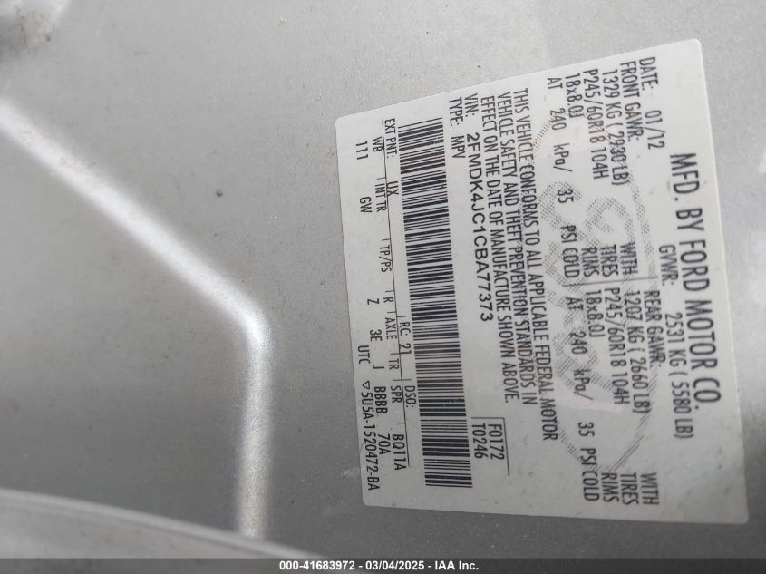 Color SilverCylinders 6Drive Full driveVIN 2FMDK4JC1CB******State Run & Drive VerifiedDamage Left sideAuction date 2025-03-21 AutoRIA