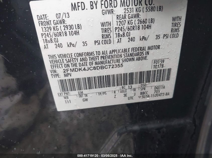 Color BlackCylinders 6Drive Full driveVIN 2FMDK4JC8DB******State Run & Drive VerifiedDamage Front and backAuction date 2025-03-25 AutoRIA