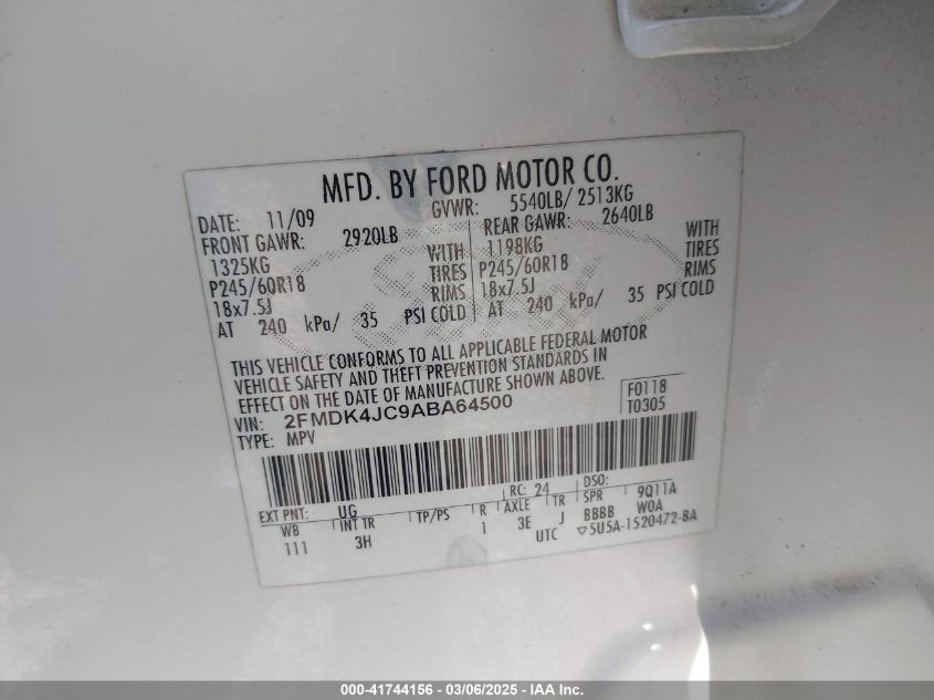 Color WhiteCylinders 6Drive Full driveVIN 2FMDK4JC9AB******State Run & Drive VerifiedDamage Front or back