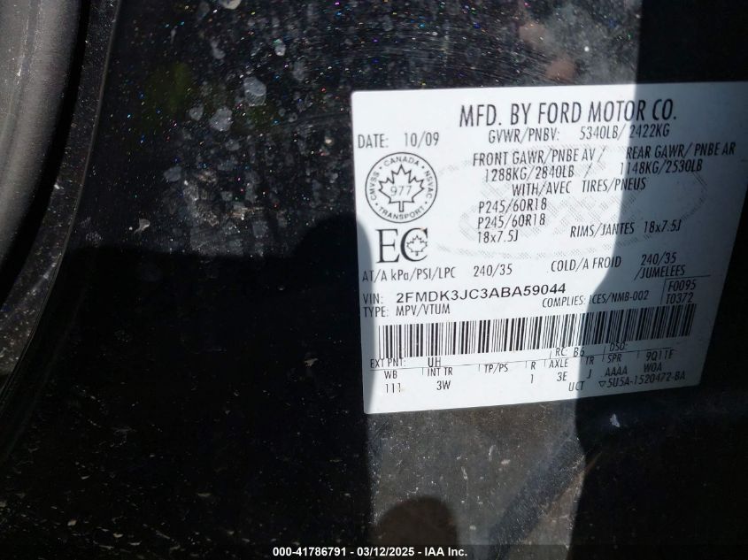 Color BlackCylinders 6Drive Front wheel driveVIN 2FMDK3JC3AB******State Run & Drive VerifiedDamage Front or back