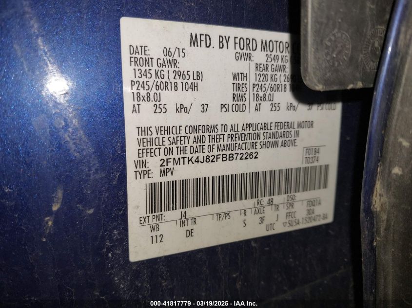 2015 FORD EDGE 2015 Gasoline, 3.5, Full drive, VIN - 2FMTK4J82FB****** from the USA