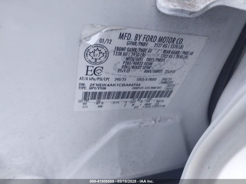 Color WhiteCylinders 6Drive Full driveVIN 2FMDK4AK1CB******State Run & Drive VerifiedDamage Back AutoRIA
