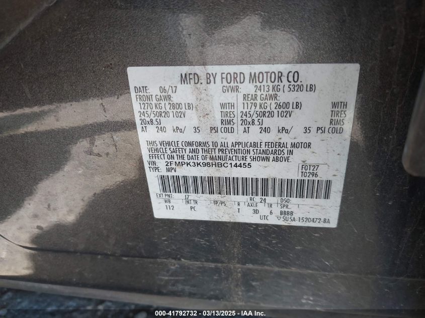 2017 FORD EDGE 2017 Gasoline, 2.0, Front wheel drive, VIN - 2FMPK3K98HB****** from the USA