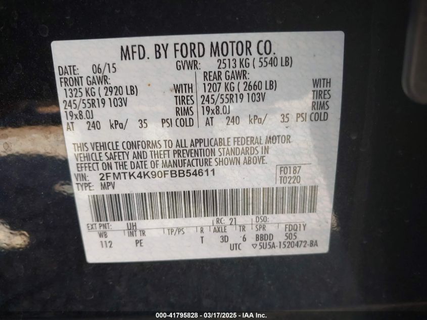 Color BlackCylinders 4Drive Full driveVIN 2FMTK4K90FB******State Run & Drive VerifiedDamage Front or back AutoRIA