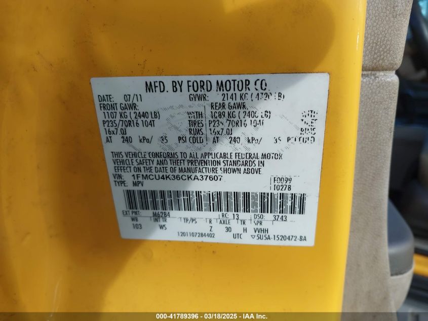 Color YellowCylinders 4Drive Front wheel driveVIN 1FMCU4K36CK******State Run & Drive VerifiedDamage Front or backAuction date 2025-03-25