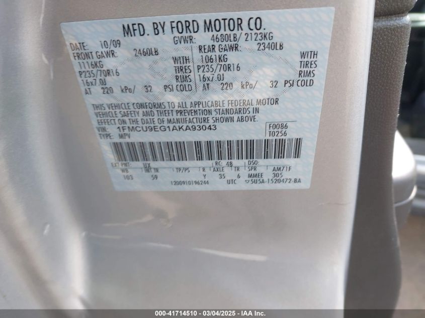 Color SilverCylinders 6Drive Full driveVIN 1FMCU9EG1AK******State Run & Drive VerifiedDamage Front or backAuction date 2025-03-20 AutoRIA