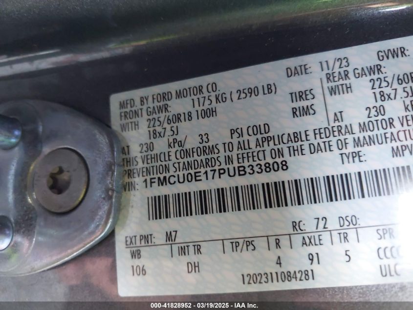 2023 FORD ESCAPE 2023 Hybrid, 2.5, Front wheel drive, VIN - 1FMCU0E17PU****** from the USA