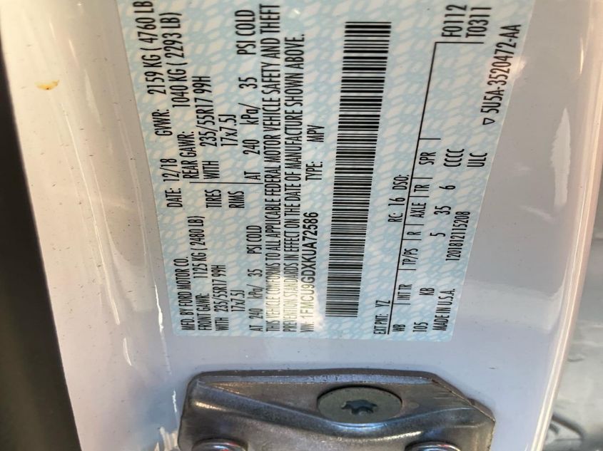 2019 FORD ESCAPE 2019 Gasoline, 1.5, Full drive, VIN - 1FMCU9GDXKU****** from the USA