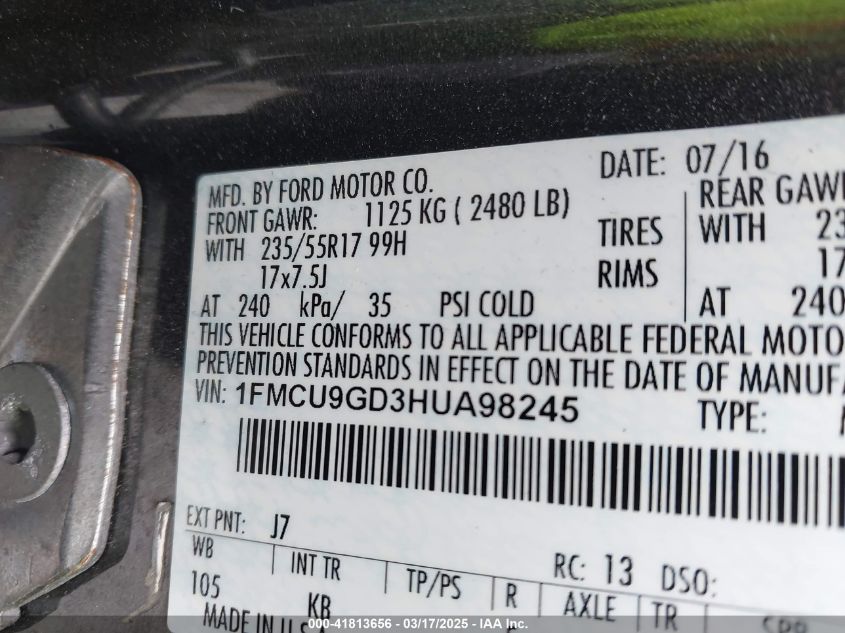 2017 FORD ESCAPE 2017 Gasoline, 1.5, Full drive, VIN - 1FMCU9GD3HU****** from the USA