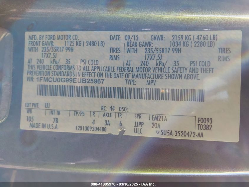 Color GrayCylinders 4Drive Front wheel driveVIN 1FMCU0G99EU******State Run & Drive VerifiedDamage Front or back AutoRIA