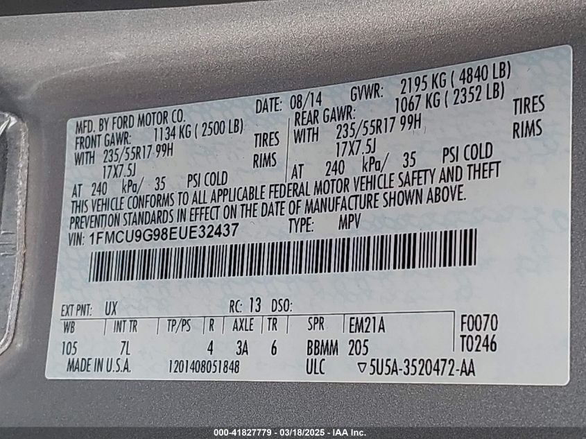 Color SilverCylinders 4Drive Full driveVIN 1FMCU9G98EU******State Run & Drive VerifiedDamage Front or back AutoRIA