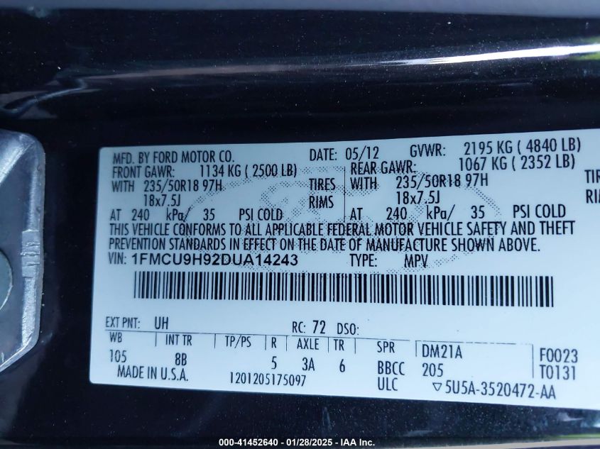 Color BlackCylinders 4Drive Full driveVIN 1FMCU9H92DU******State Run & Drive VerifiedDamage Front or back AutoRIA