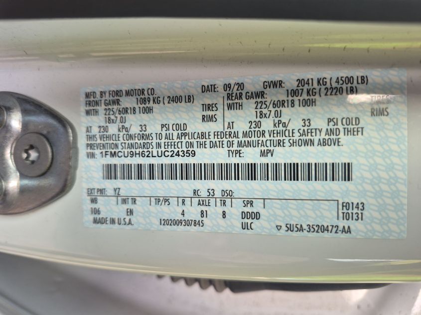 2020 FORD ESCAPE 2020 Gasoline, 1.5, Full drive, VIN - 1FMCU9H62LU****** from the USA