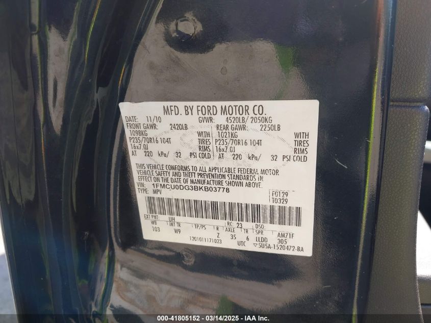 2011 FORD ESCAPE 2011 Gasoline, 3.0, Front wheel drive, VIN - 1FMCU0DG3BK****** from the USA