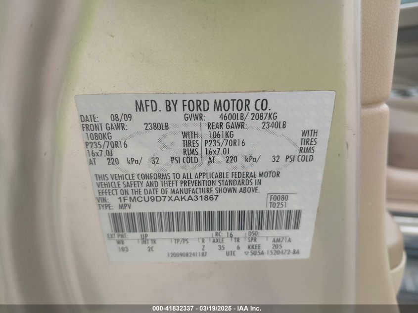 Color GoldCylinders 4Drive Full driveVIN 1FMCU9D7XAK******State Run & Drive VerifiedDamage Front or back AutoRIA
