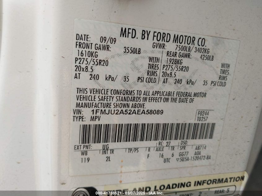 2010 FORD EXPEDITION 2010 Gasoline, 5.4, Full drive, VIN - 1FMJU2A52AE****** from the USA