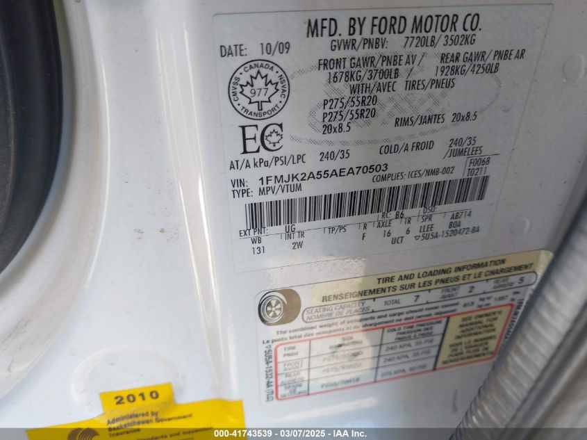 2010 FORD EXPEDITION 2010 Gasoline, 5.4, Full drive, VIN - 1FMJK2A55AE****** from the USA