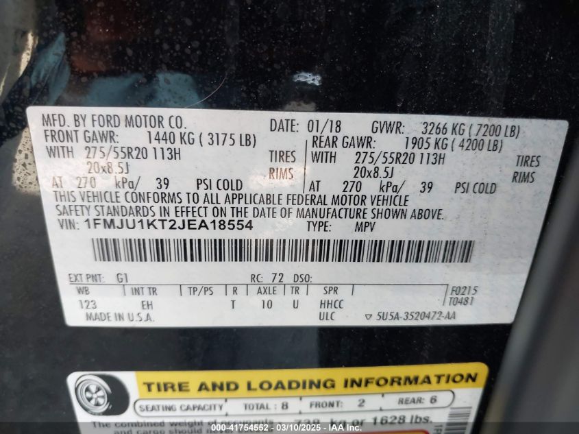 2018 FORD EXPEDITION 2018 Gasoline, 3.5, Unknown, VIN - 1FMJU1KT2JE****** from the USA