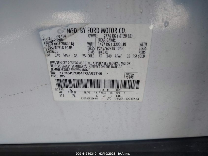 Color WhiteCylinders 6Drive Front wheel driveVIN 1FM5K7B84FG******State Run & Drive VerifiedDamage Back AutoRIA