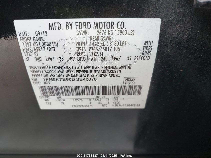 Color BlackCylinders 4Drive Front wheel driveVIN 1FM5K7B90DG******State Run & Drive VerifiedDamage Front or back AutoRIA